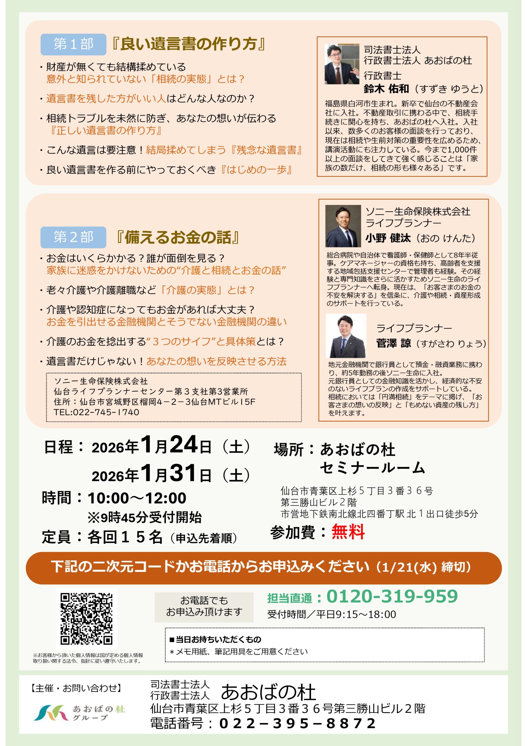 ◇1/24(土)・1/31(土)開催◇ 相続・介護まるわかりセミナーのご案内